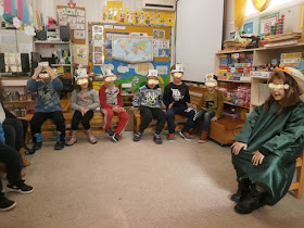 Δραματοποιήσαμε το παραμύθι....αφηγώντας το κάθε παιδί(μήνας ) τα θετικά του χαρακτηριστικά στην Κυρά Καλή...!! αλλά και η Κυρά Κακή αράδιασε ...τα αρνητικά στοιχεία του κάθε μήνα!!